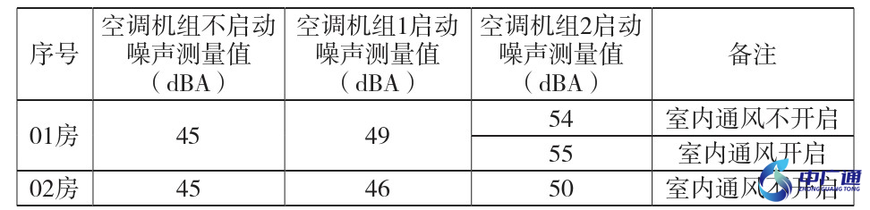 根据现场检测,中央空调启动时,01房间内有明显的可听结构声,并且舱壁板也感受到明显的振动。经现场噪声测量可看出,01房间噪声受2号机组的影响较大。